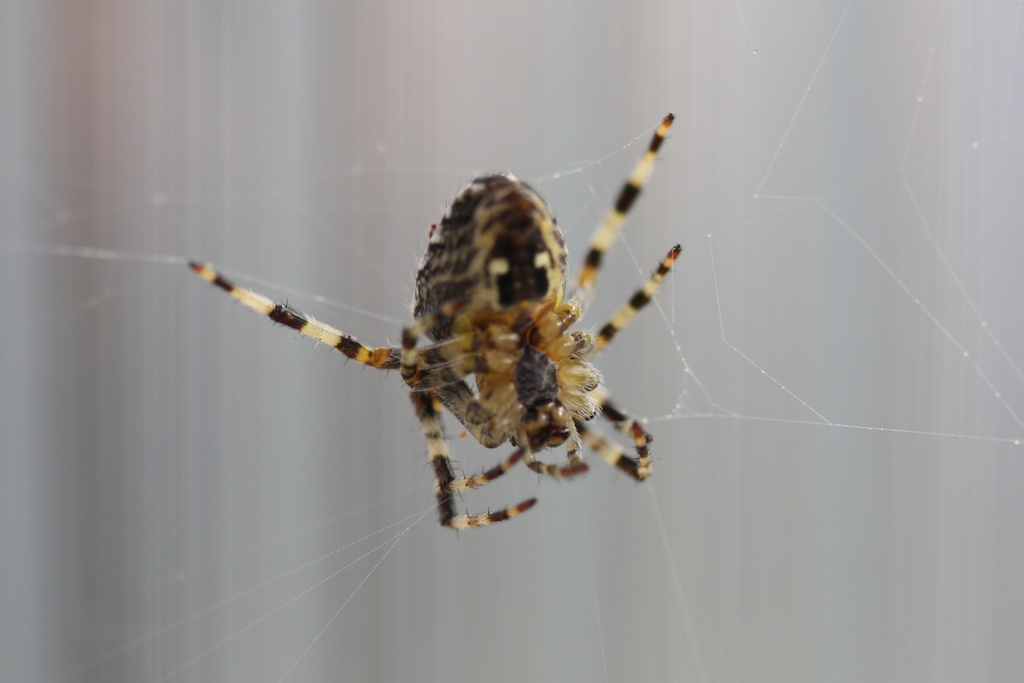 Andre taulengde, siste biten mot toppen. Min tur å lede. Her ser vi hovedutfordringen som en svart prikk mot himmelen. Dem var det det mange av - edderkopper. Ganske store. Store nett. Eneste pinne jeg hadde var nøttepirkeren, og den er ikke så veldig lang... Yæk!!!